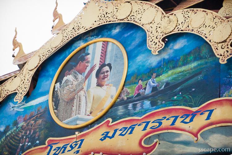 Picture of The king and queen, shown in an archway over the main street in gallery Chiang Mai.