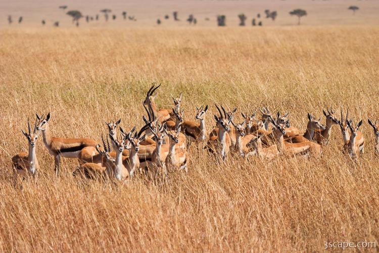 Picture of Thomsons Gazelle huddled together, sensing danger in gallery Serengeti National Park.