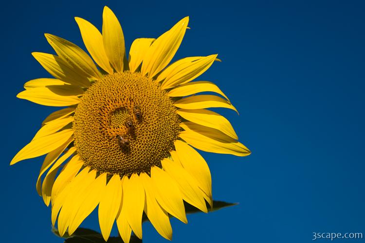 Picture of Three Bees and a Sunflower in gallery Flowers.