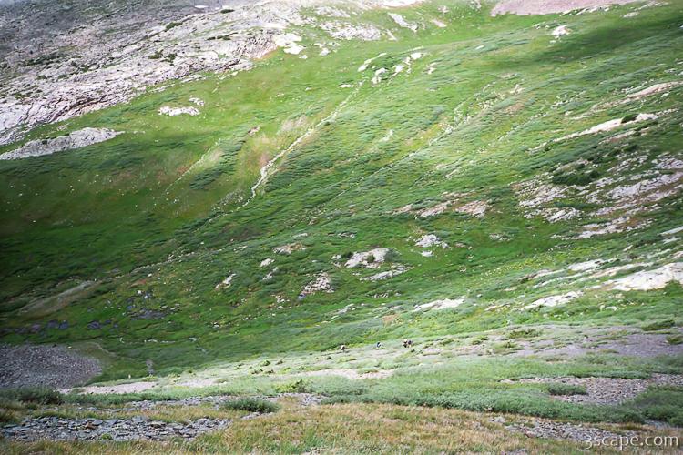Picture of Tiny hikers in the valley far below in gallery Zlaz 1993 - Scout Trip.