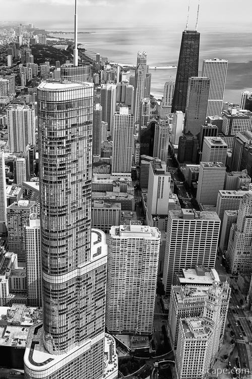 Downtown Chicago Aerial Black and White