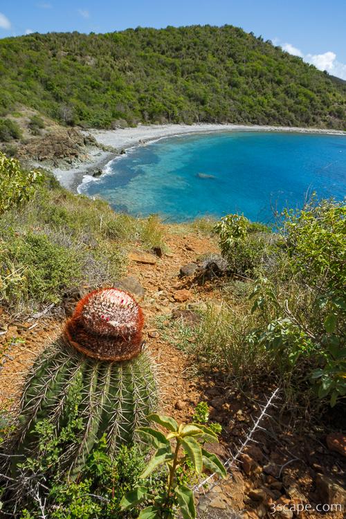 Picture of Turk's Head Cactus overlooking Blue Cobblestone Beach along Ram Head Trail in gallery St. John (2016).