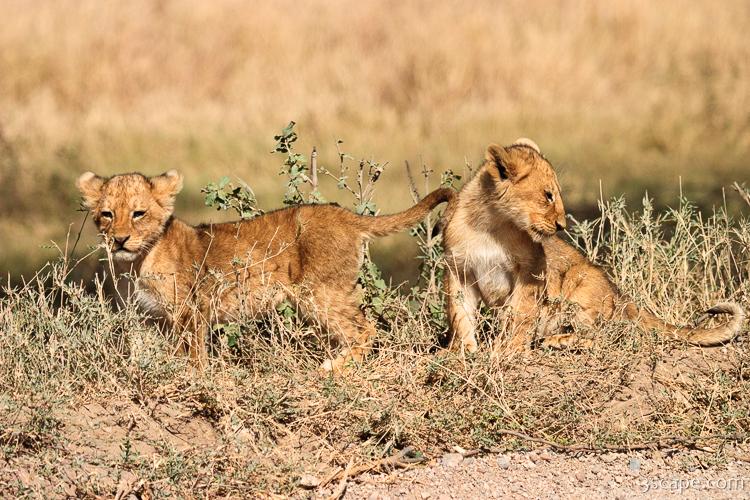 Picture of Two adorable lion cubs in gallery Serengeti National Park.