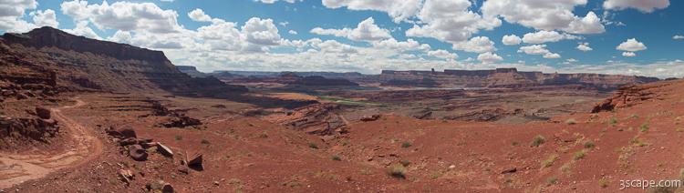 Stitched panoramic image of southeast Utah canyonlands from Hurrah Pass along Chicken Corners Jeep trail.