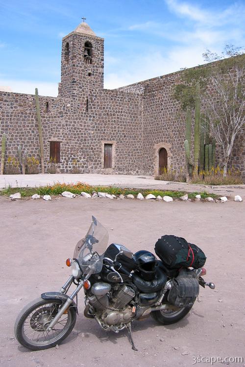 Picture of Virago 535 at the mission in gallery Santa Rosalia to Loreto.