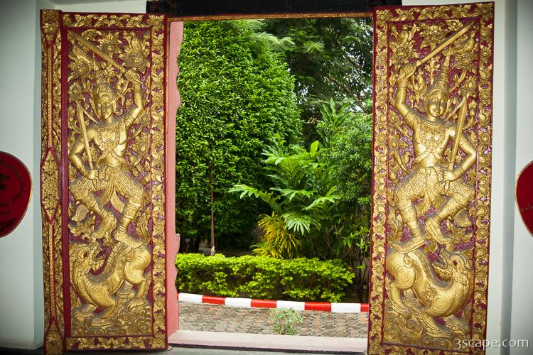 Picture of Wat Phan On doors in gallery Chiang Mai.