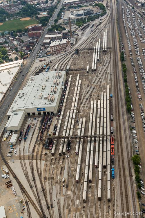 Picture of Western Avenue Metra Train Yard in gallery Chicago Aerial Photography.